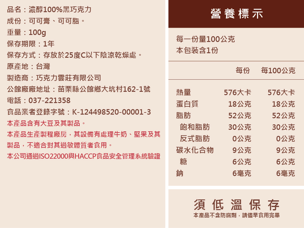 100%可可脂製成