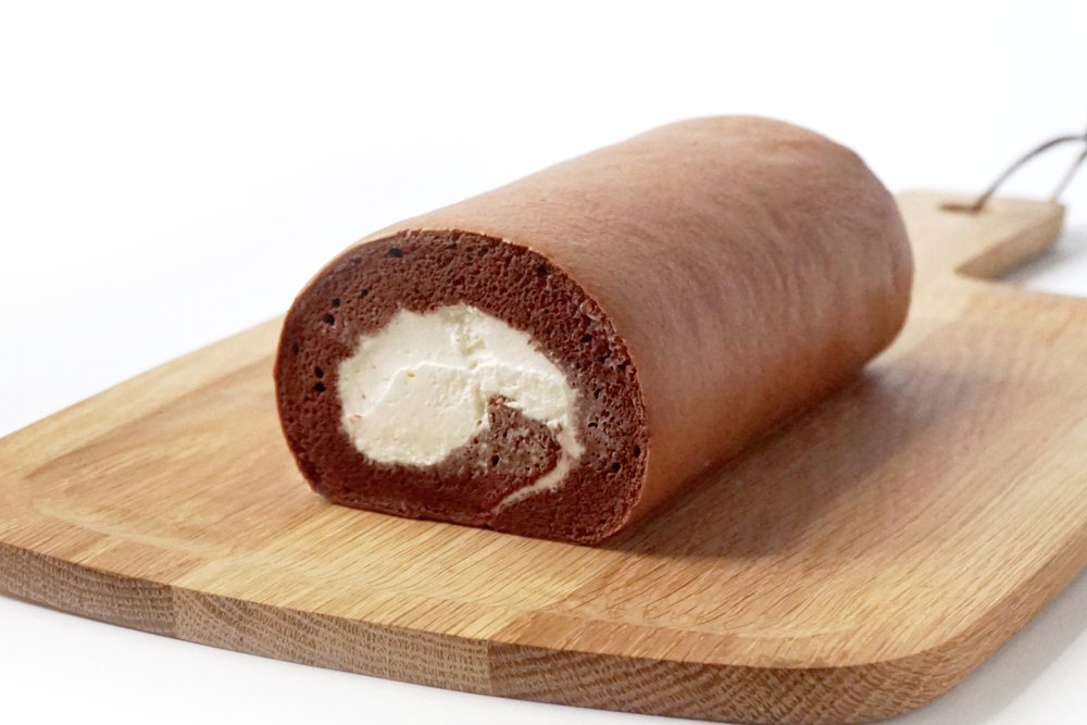 微苦濃可可蛋糕體濕潤綿密,苦甜平衡不甜膩
