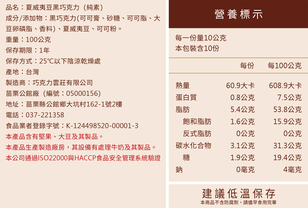 黑巧克力與夏威夷豆的完美搭配組合,香脆可口