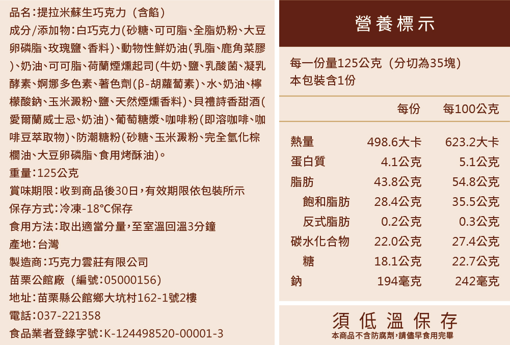 巧克力內加有少許威士忌酒,淡淡酒香,帶點咖啡香,是一款帶點甜味的生巧 !