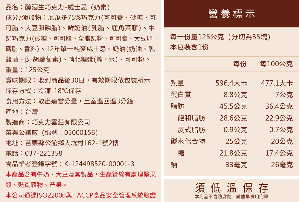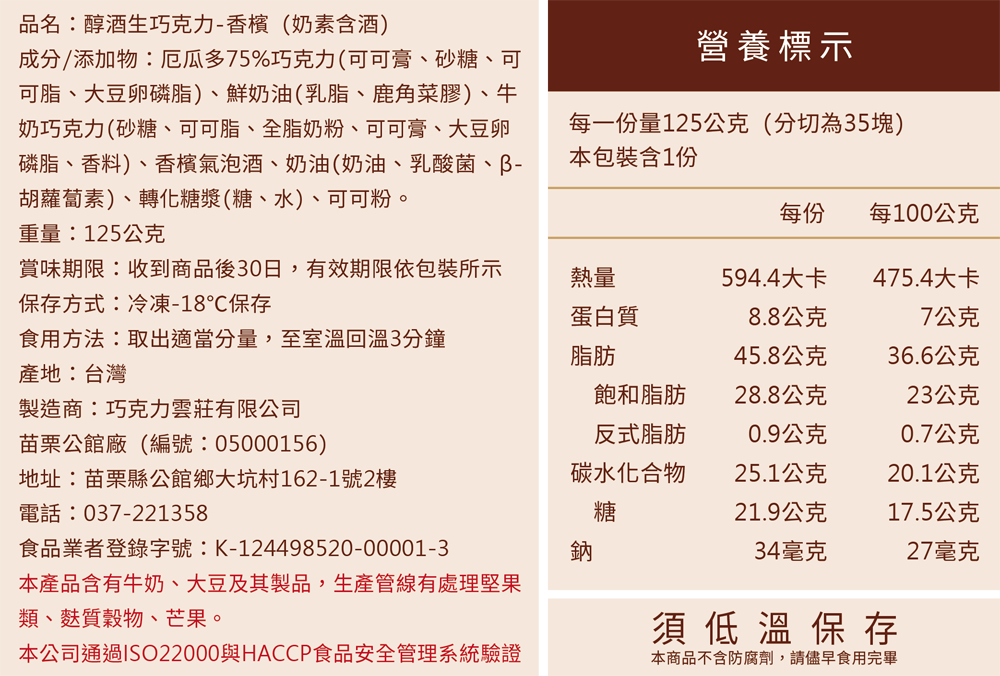本產品含微量酒精成分,請酌量品嚐。
