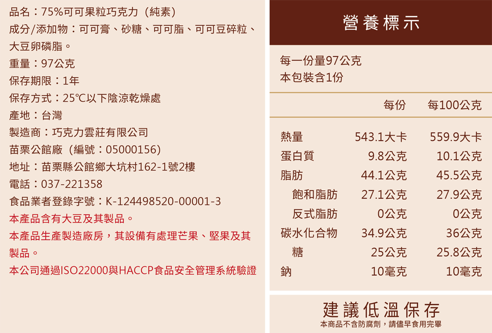 巧克力雲莊獨家調製黑巧克力撒上香脆可可碎粒
