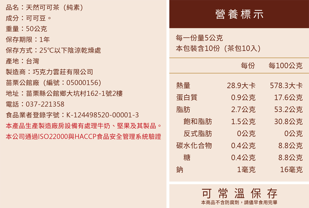 天然可可茶 x1