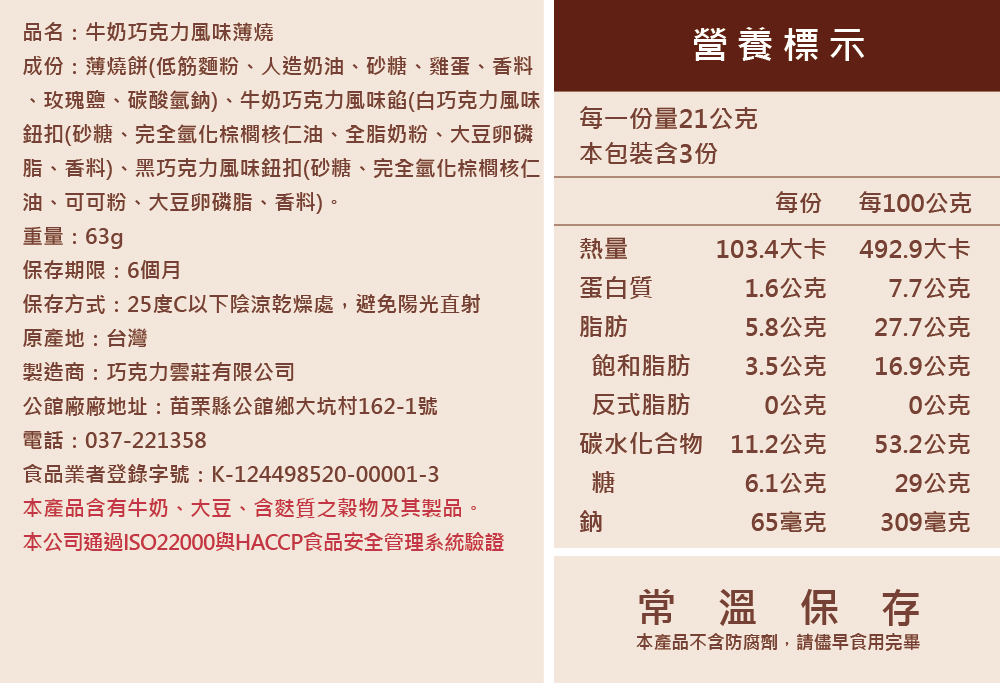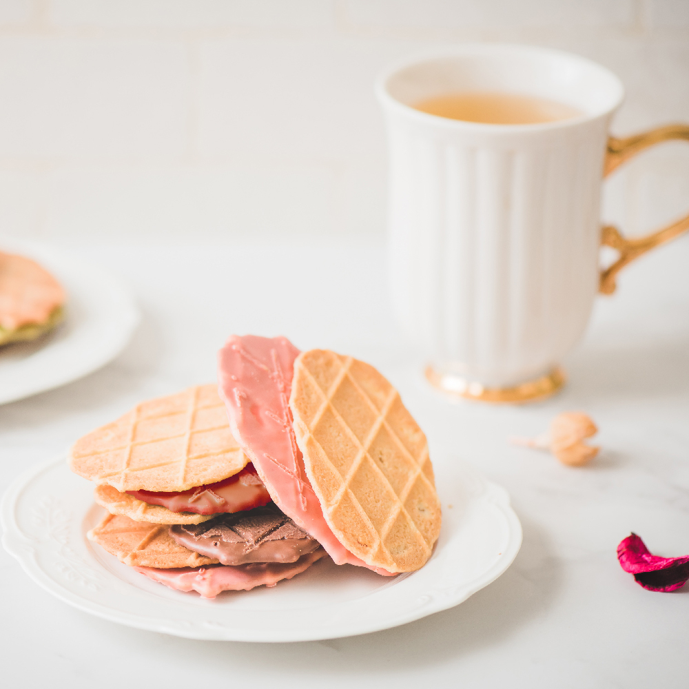 鬆餅形狀的餅乾片酥脆可口,搭配香醇滑順巧克力內餡
