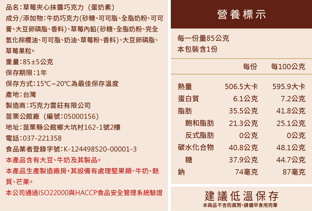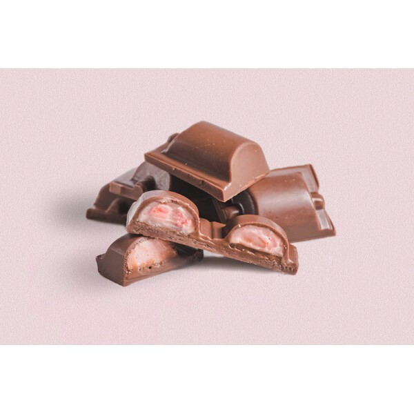 薄脆的巧克力外皮,裡面填滿了滑順軟芯草莓優格與草莓牛奶內餡,
