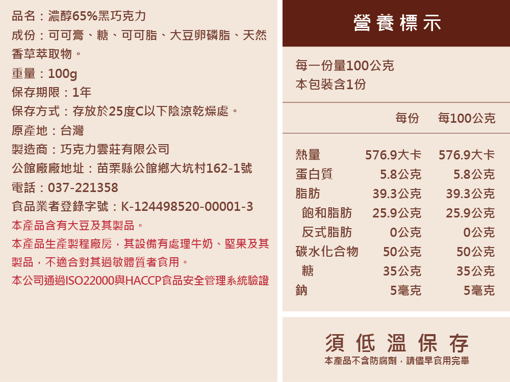 100%可可脂製成