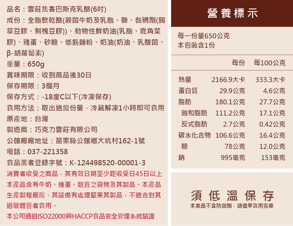 採用新鮮雞蛋、美國乳酪及鮮奶油製成