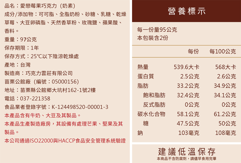 巧克力雲莊獨家調製白巧克力撒上酸甜草莓果粒