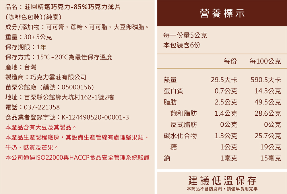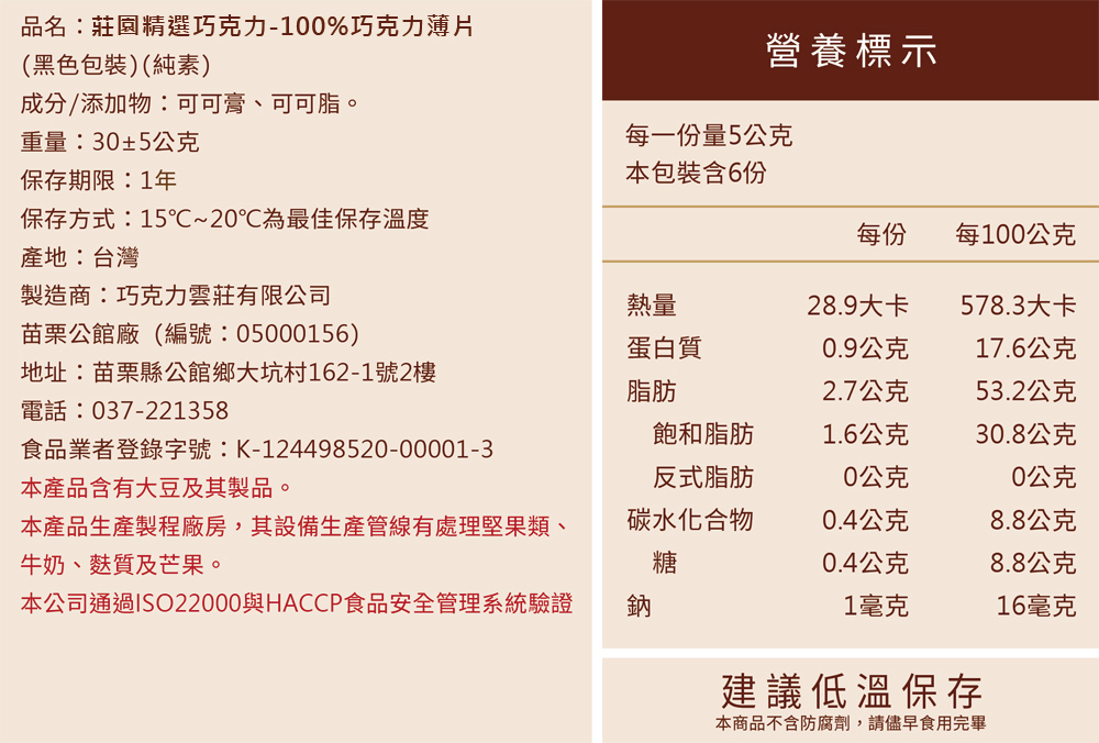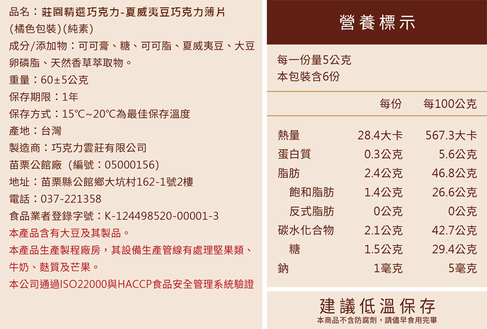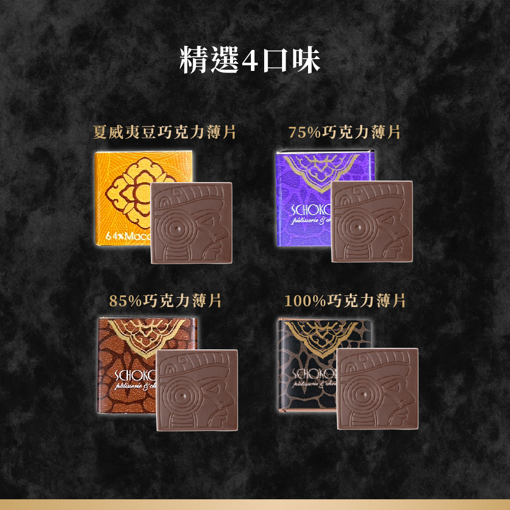 含4種口味:64%夏威夷豆、75%、85%、100%